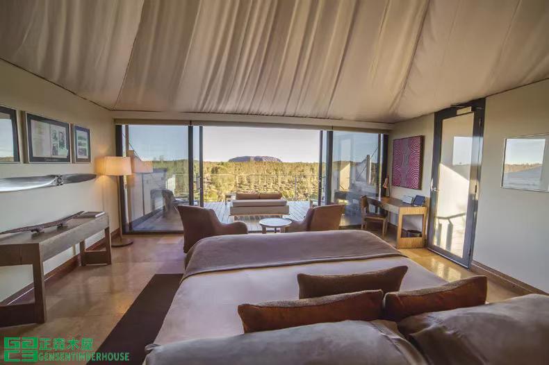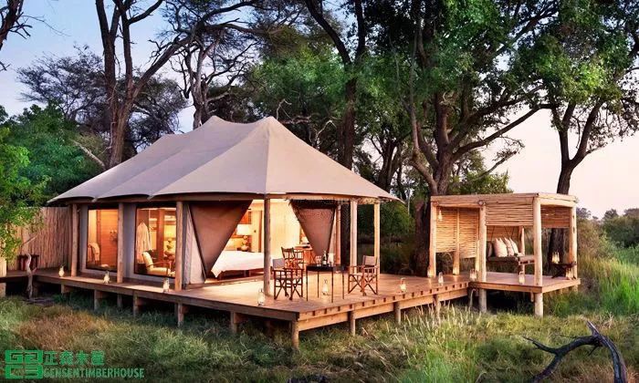 帐篷木屋主体框架为木结构,更环保,更安全,更稳固。